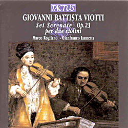 Der italienische Komponist und Geigenvirtuose Giovanni Battista Viotti hat der Entwicklung des Violinkonzerts und des solistischen Violinspiels entscheidende Impulse gegeben und gilt in dieser Hinsicht auch als Wegbereiter für Solisten und Komponisten der nachfolgenden Generationen. Er wurde am 12. Mai 1755 in Fontanetto da Po geboren. Von seinem Vater, einem Hufschmied, bekam er eine kleine Geige geschenkt und erregte bereits als Achtjähriger mit seinem Spiel darauf besondere Aufmerksamkeit. Nach dem Tod seiner Mutter 1766 übernahm eine Adelsfamilie die Ausbildung des talentierten Jungen bei Gaetano Pugnani in Turin. Schließlich erhielt er eine Anstellung in der Königlichen Kapelle in Turin. Diese gab er 1780 jedoch auf, um mit seinem Lehrer Pugnani auf eine ausgedehnte Konzerttournee zu gehen, die ihn nach Deutschland, Russland, England und Frankreich führte. 1782 trennte er sich von Pugnani und ließ sich in Paris nieder, wo er erfolgreich in den berühmten „Concerts spirituels“ auftrat und ein Jahr später zum Hofsolisten der Königin Marie Antoinette avancierte. Im Zuge der französischen Revolution musste er 1792 aufgrund seiner Nähe zum französischen Königshaus Frankreich verlassen und begab sich nach London. Hier konnte er sich mit seinen Violinkonzerten einen Namen machen, u.a. konzertierte er 1795 zusammen mit Joseph Haydn. 1797 wurde er sogar zum „leader of the band and director of the orchestra“ am King’s Theatre und war auch Mitbegründer der Royal Philharmonic Society. 1798 musste Viotti jedoch wieder aus politischen Gründen das Land verlassen. Er verbrachte drei Jahre auf dem Landgut Friedrichshulde bei Hamburg, ehe er wieder nach London zurückkehrte. Zunächst lebte er dort jedoch vorsichtshalber incognito und gab keine öffentlichen Auftritte. Stattdessen suchte er andere Einnahmequelle in der Beteiligung an einem Weinhandel. Nachdem sich die Wogen wieder geglättet hatten, erhielt er 1811 sogar die englische Staatsbürgerschaft. Das Geschäft mit dem Weinhandel endete jedoch in einem Bankrott mit riesigen Schulden. Um diesen Schuldenberg abzubauen, begab sich Viotti 1818 erneut nach Paris, wo er Leiter der Pariser Oper und des italienischen Theaters wurde. Als der Duc de Berry 1820 im Opernsaal ermordet wurde, wurde Viotti allerdings erneut Opfer politischer Anschuldigungen und Ränkespiele und kehrte nach London zurück, wo er am 3. März 1824 völlig überschuldet starb. Als künstlerisches Erbe hinterließ Viotti jedoch 29 Violinkonzerte, 10 Klavierkonzerte und zwei Symphonies concertantes für 2 Violinen und Orchester, auf das nicht zuletzt auch Ludwig van Beethoven zurückgegriffen hat, der Viottis Konzerte sehr genau kannte. Viottis Violinkonzerte waren in ganz Europa anerkannt und galten seinerzeit als Standardwerke.
